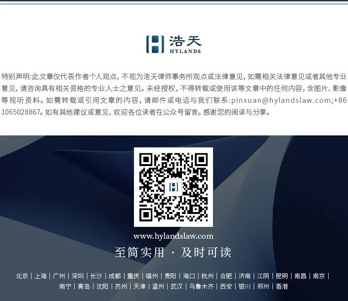 浩天律师事务所编写《浩天资产管理资讯月刊》的目的仅是为了帮助客户及时了解资产管理行业中国法律的最新动态和发展,上述有关信息不应该被看作是特定事务的法律意见或者法律依据,上述内容仅供参考。
