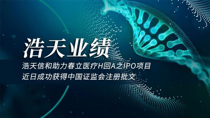 浩天信和助力春立医疗H回A之IPO项目近日成功获得中国证监会注册批文