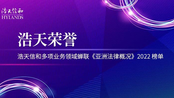 浩天信和多项业务领域蝉联《亚洲法律概况》2022榜单