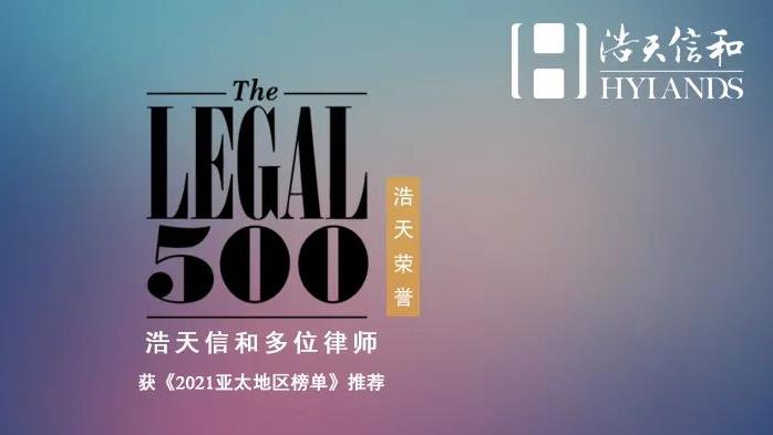 浩天信和荣登The Legal 500《2021亚太地区榜单》。