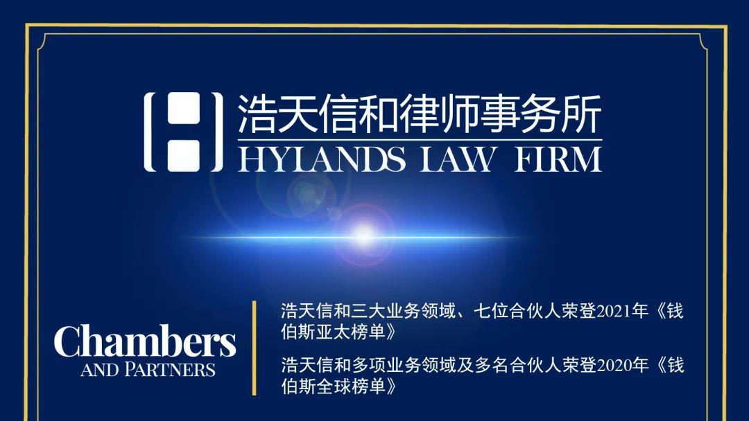 浩天信和三大业务领域和七位合伙人入选2021钱伯斯亚太榜单。