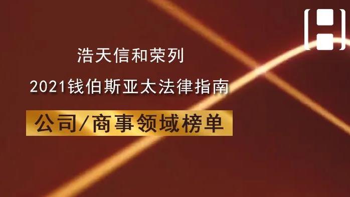 浩天信和荣列《2021钱伯斯亚太法律指南》公司/商事领域榜单。