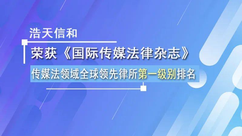 2020年7月,由中国文化娱乐法治50人论坛组委会主办,北京市影视娱乐法学会协办,娱乐法内参、知产力、娱乐资本论承办的“首届文化娱乐法治评选”活动发布了获奖榜单,浩天信和律师事务所获评“杰出娱乐法律师事务所”。