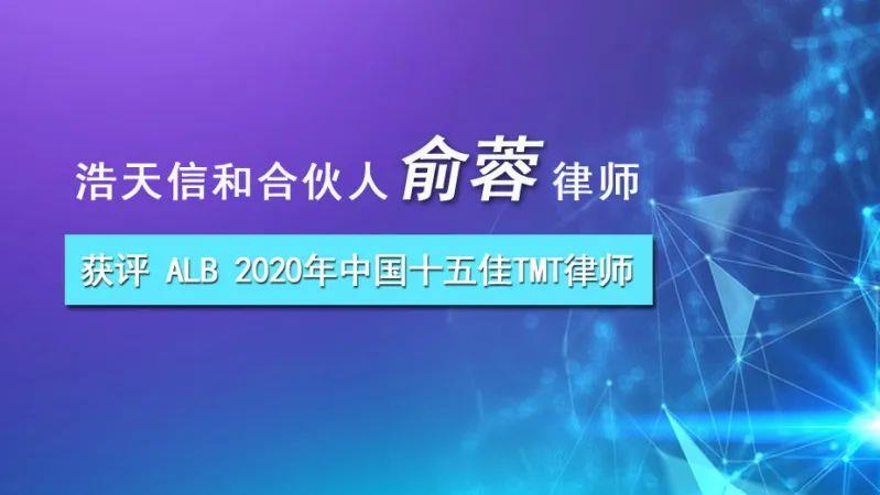 浩天信和合伙人俞蓉律师获评ALB 2020年“中国十五佳TMT律师”。